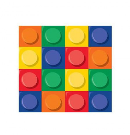 Pack com 16 guardanapos com o tema Lego Block Party que tornam a tua festa de aniversário num autêntico sucesso.