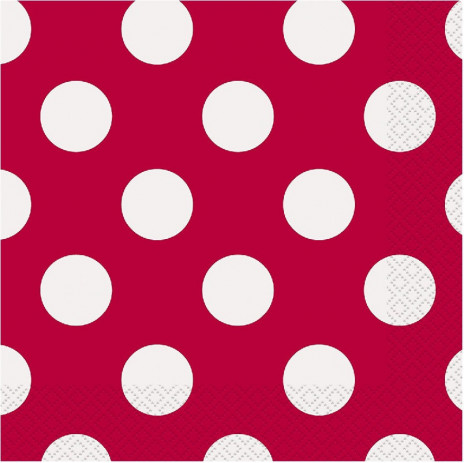 Guardanapos Vermelhos Bolinhas - 16 unid