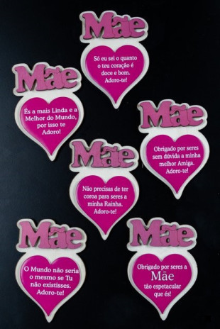 Para oferecer no dia da mãe, um iman com coração para colocar no frigorífico, disponível com várias frases.