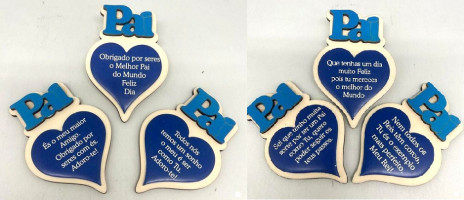 Para oferecer no dia do pai, um iman com coração para colocar no frigorífico, disponível com várias frases.