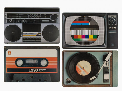Individual de mesa de música no estilo vintage, de tecido resistente e de fácil lavagem.