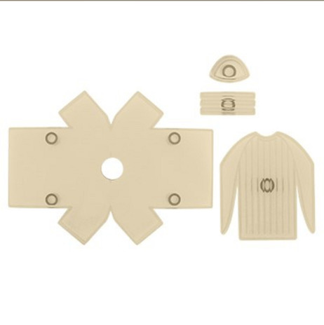 O cortador tem 2 partes, uma que corta a gola de uma camisola e depois dobra e cola facilmente nas costuras para torná-la 3D.