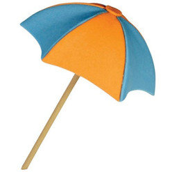 Fabuloso cortador de guarda-chuva 3D para bolos temáticos de praia e dias chuvosos. As peças são fixadas entre si e colocadas umas sobre as outras para secar e moldar sua estrutura.
