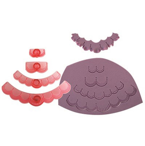 Conjunto de 4 cortadores de borda práticos, perfeitos para adicionar frisos extras detalhados aos seus bolos, tortas, cupcakes e muito mais.Os 4 cortadores criam bordas de diferentes tamanhos e ângulos, tornando-os ótimos para adicionar detalhes a todas as suas criações mais doces.