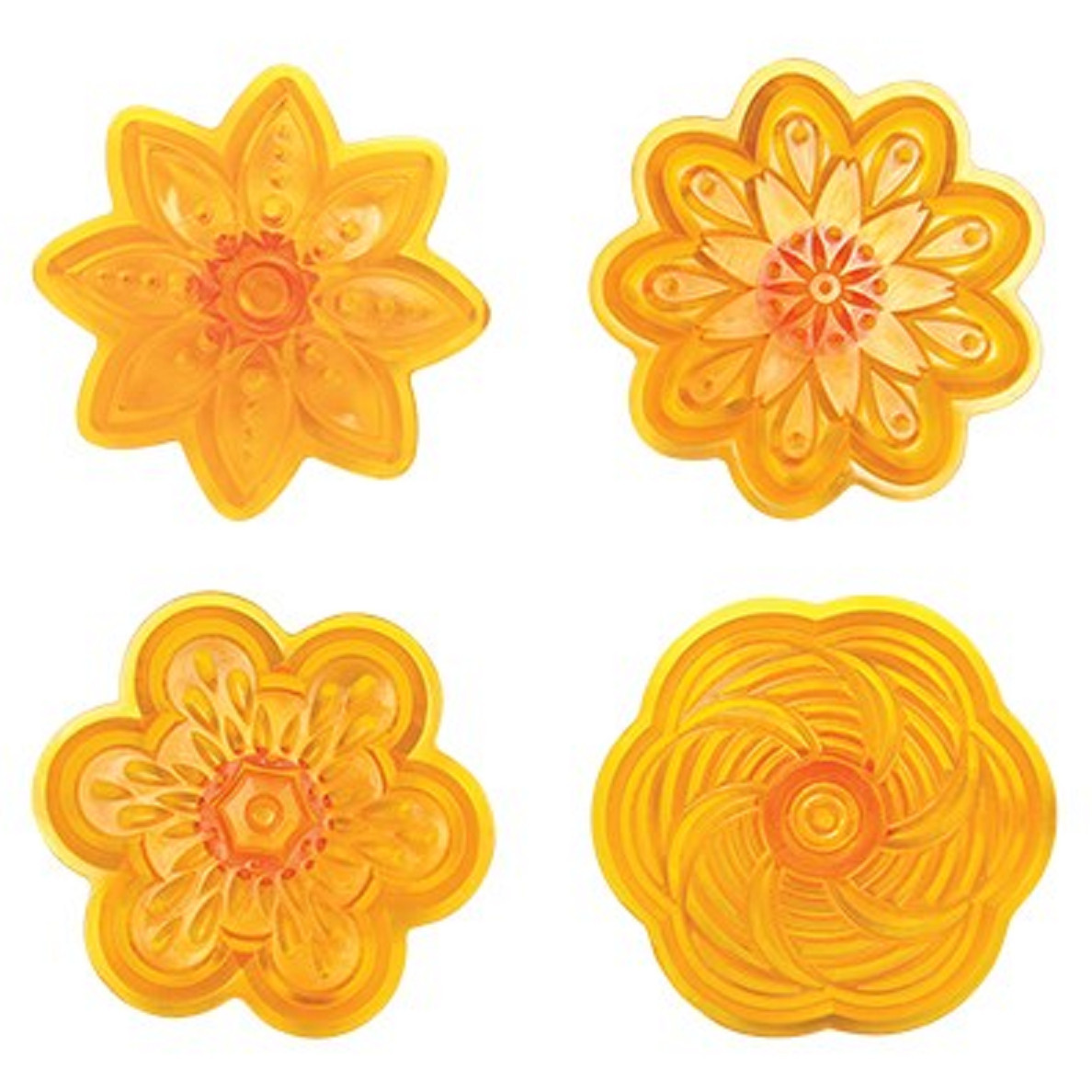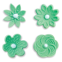 Conjunto de 4 cortadores fantasia perfeitos para criar flores fantásticas para decorar cupcakes, biscoitos e muito mais.