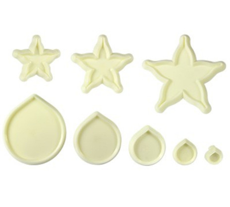 A embalagem inclui 5 pétalas de rosa de diferentes tamanhos e 3 cortadores de cálice de diferentes tamanhos que se unem para criar flores de açúcar perfeitas para completar qualquer bolo ou sobremesa. Pétala maior 41mm x 47mm, pétala menor 9 x 11mm, cálice maior 23 x 56mm e cálice menor 11 x 30mm.