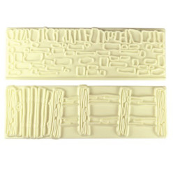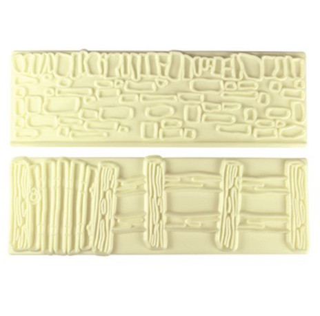 Prático conjunto de 2 cortadores a simular um muro de pedra e uma cerca com portão, muito fáceis de usar. Ideal para usar com pasta de açúcar, pasta de goma ou pasta de modelar flores.