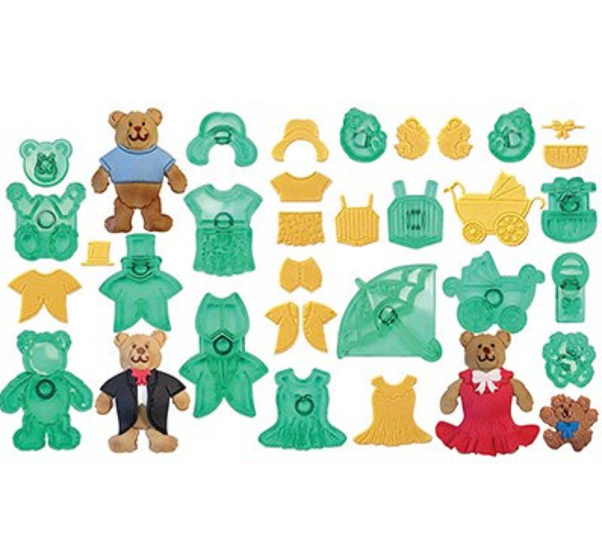 Complete qualquer bolo de celebração com este conjunto de 16 cortadores fofos Dress-a-Teddy. Este conjunto é uma ótima maneira de envolver as crianças na decoração de bolos, por que não deixá-las escolher as roupas do urso? Ideal para usar com pasta de açúcar, pasta de goma ou pasta de modelar flores.Inclui várias partes e roupas de ursinho que podem ser misturadas e combinadas para criar vários personagens de ursinho diferentes.