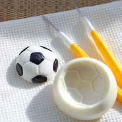 O conjunto inclui dois moldes de tamanho diferente para bola de futebol.
