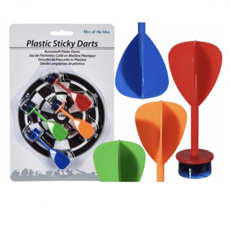 mini jogo com dardos divertidos que, quando atirados, permanecem presos a uma infinidade de superfícies (vidro, móveis, etc.) graças às suas pontas adesivas.