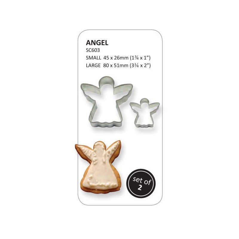 Pack de 2 cortantes em metal para a execução de bolachinhas ou bolinhos em forma de Anjo, da marca PME.
