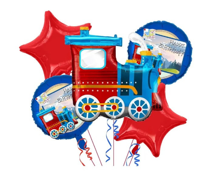 Conjunto de 5 balões com tema de comboio composto por: