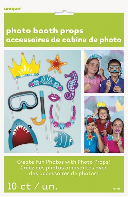 Faz uma autêntica sessão fotográfica maritima com estes 10 acessórios. Este conjunto para fotos com o tema Mar inclui um colar coral, um peixinho, uma estrela do mar, óculos de mergulhador, respirador, coroa de rei, tiara, cavalo marinho, boca sorridente e um tubarão.