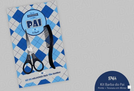 Para oferecer no dia do pai, um kit para aparar a barba com tesoura e pente.