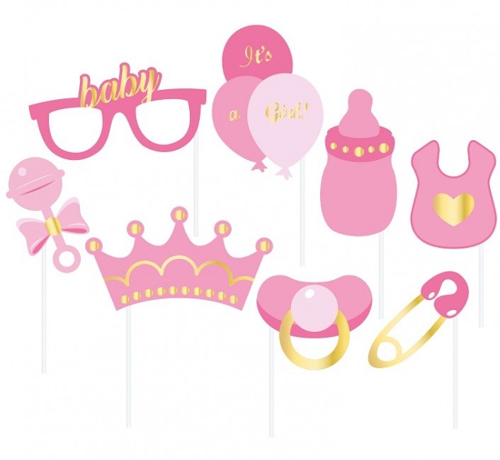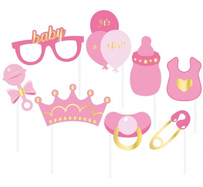 Super divertidas fotos é o que podes tirar com este conjunto de 8 elementos. Pack para fotografias inesquecíveis nas festas, que inclui: 1 roca, 1 coroa, 1 chupeta, 1 alfinete de ama, 1 babete, 1 biberon, 1 óculos com a palavra "baby" e 1 conjunto de 3 balões com a frase "It's a girl!".