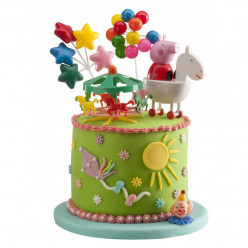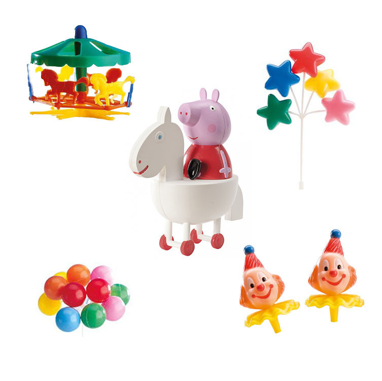 Figura decorativa para bolos de aniversário da Porquinha Peppa, mais cavalo, carrossel, conjuntos de balões e palhaços. Inclui 5 elementos.