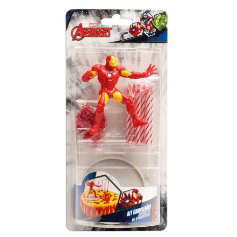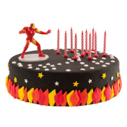 Para decoração de bolo de aniversário, uma figura do Homem de Ferro dos Vingadores da Marvel mais 10 velas.