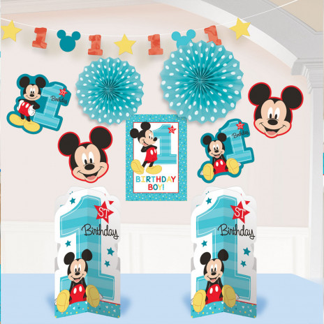 Conjunto de decoração para a festa do primeiro aniversário do seu bebé com o Mickey.