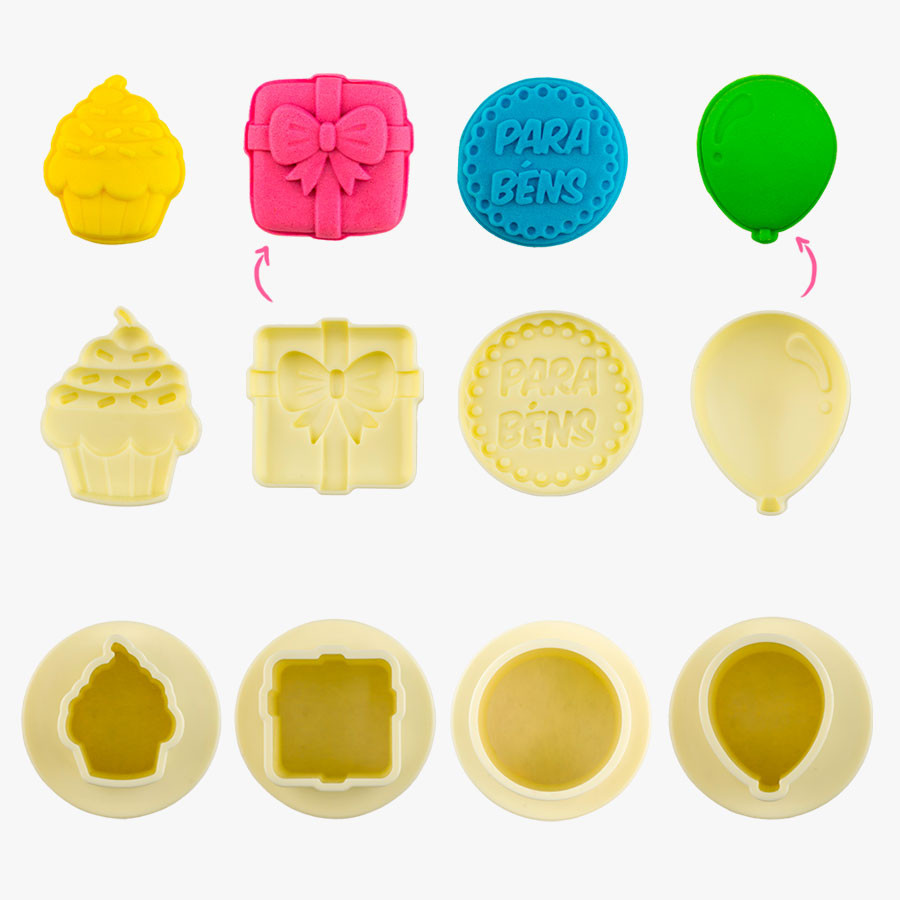 Com ele é possível modelar um doce inteiro de até 25g ou fazer apliques fininhos para compor a sua decoração.