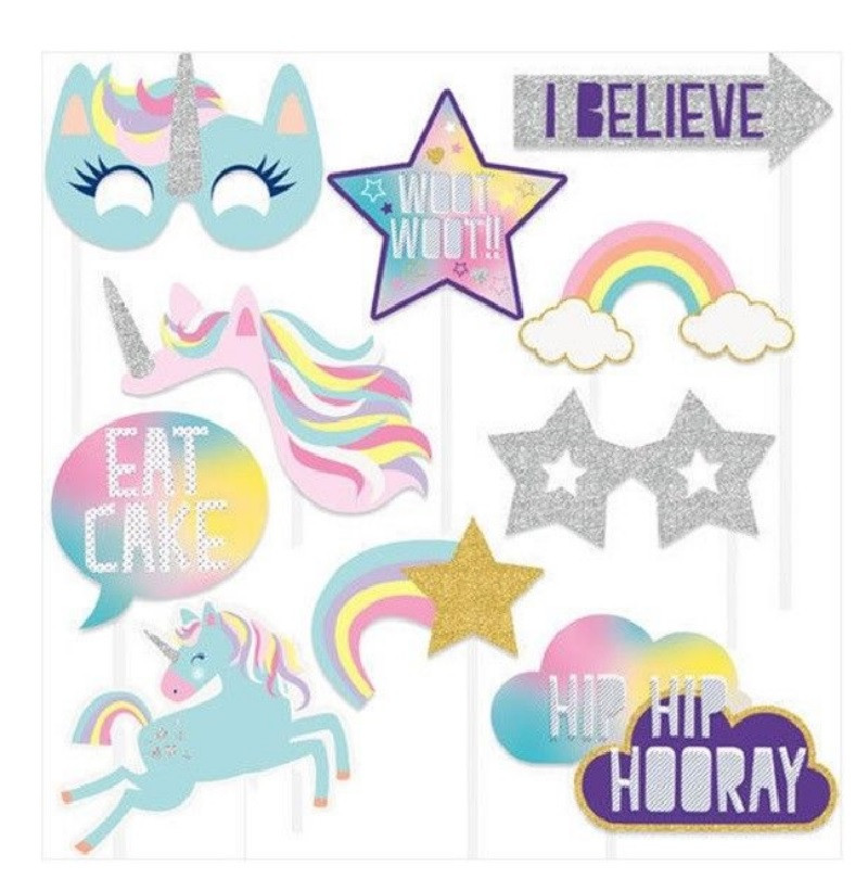 Conjunto de 10 acessórios de fotografias sob o tema Unicórnio