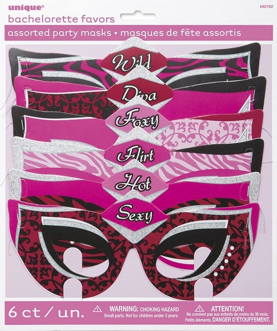 6 Máscaras de papel para festas de despedida de solteira, de tamanho único