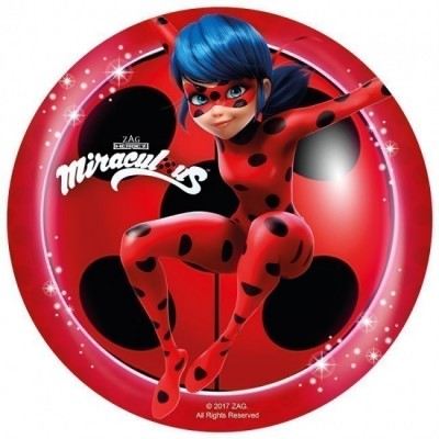 Disco de obreia ou hóstia para a decoração do bolo de aniversário com a maior heroina da atualidade a Ladybug. Diâmetro: 20cm.