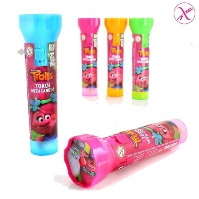 Lanterna sortida dos Trolls com doces e projeção de imagem, um belissimo e divertido brinde para festas de anos. Sem gluten.Dimensões: 11,5 x 2,5cm