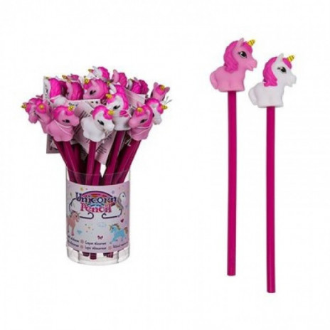 Lápis de Unicórnio de media dureza HB, nos modelos rosa e branco.