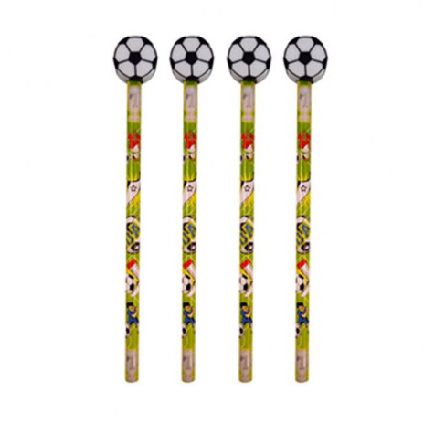 Lápis de carvão com borracha temática alusiva ao futebol. Ideal para oferecer aos seus convidados na sua festa de aniversário temática.
