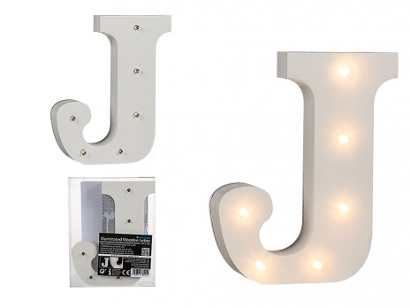 Letra J com iluminação com 8 Leds com 16cm de altura. Fabricado em MDF este artigo é ótimo para decoração de salas, quartos, aniversários ou outros eventos e pode ser utilizado de dois modos, livre em qualquer superfície ou suspenso na parede.