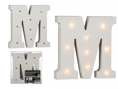 Letra M com iluminação com 8 Leds com 16cm de altura. Fabricado em MDF este artigo é ótimo para decoração de salas, quartos, aniversários ou outros eventos e pode ser utilizado de dois modos, livre em qualquer superfície ou suspenso na parede.