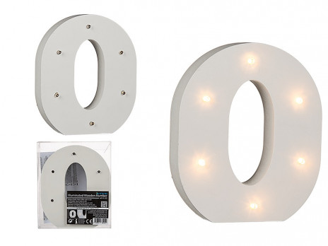 Letra O com iluminação com 8 Leds com 16cm de altura. Fabricado em MDF este artigo é ótimo para decoração de salas, quartos, aniversários ou outros eventos e pode ser utilizado de dois modos, livre em qualquer superfície ou suspenso na parede.
