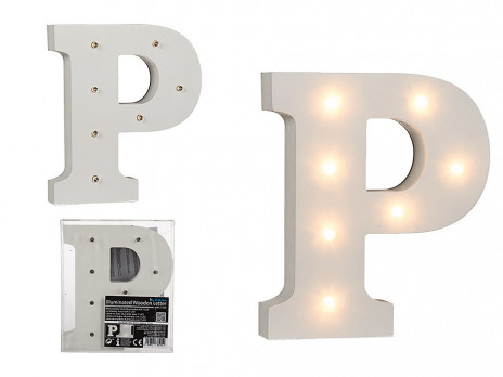 Letra P com iluminação com 8 Leds com 16cm de altura. Fabricado em MDF este artigo é ótimo para decoração de salas, quartos, aniversários ou outros eventos e pode ser utilizado de dois modos, livre em qualquer superfície ou suspenso na parede.
