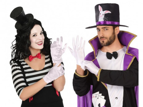 Luvas brancas para disfarce de carnaval, por exemplo para Mimo ou para Mágico, entre outros.