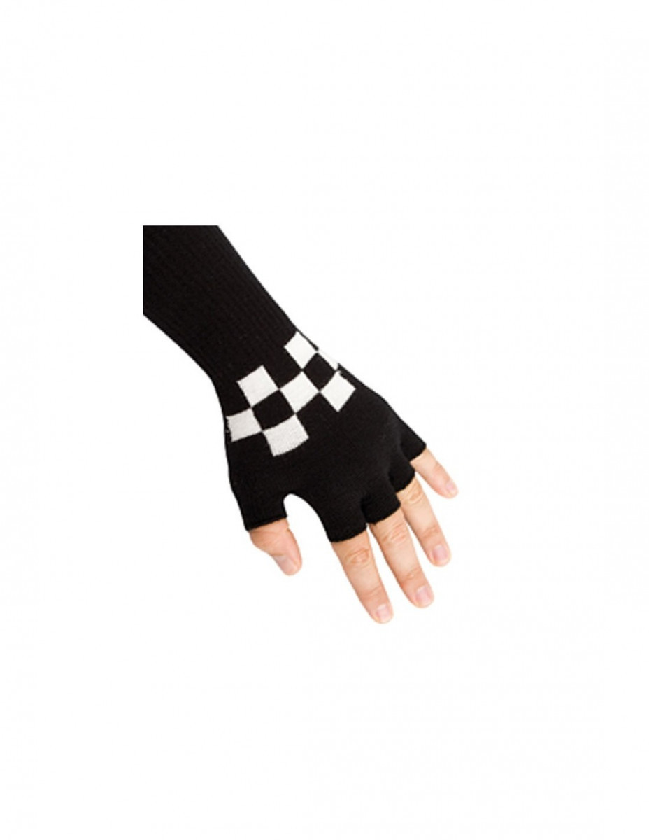Luvas sem dedos em tons de preto com padrão de xadrez para disfarces de carnaval de arlequim, de Harley Quinn, entre outros.