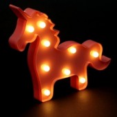 Unicórnio decorativo de cor rosa ou branco, com luzes Led de aproximadamente 23x30x3cm, ideal como luz de presença para um sono tranquilo da criança. Também pode ser usado para decoração de mesa de festa com o tema unicornio.