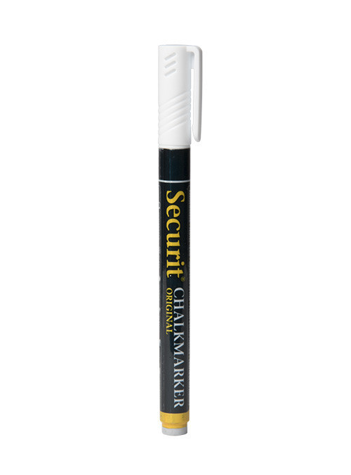 Marcador de cor branca com escrita resistente (quando seco), não desvanece nem sai com a chuva. Escreve em todas as superfícies não porosas e, pode ser retirado com uma esponja molhada.