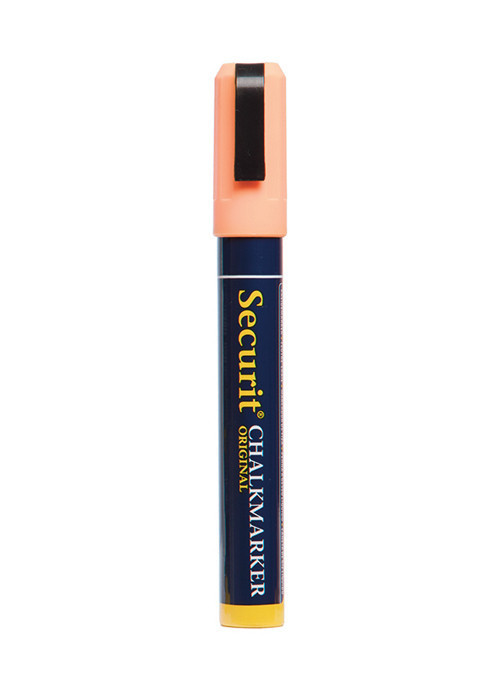 Marcador de cor laranja com escrita resistente (quando seco), não desvanece nem sai com a chuva. Escreve em todas as superfícies não porosas e, pode ser retirado com uma esponja molhada.