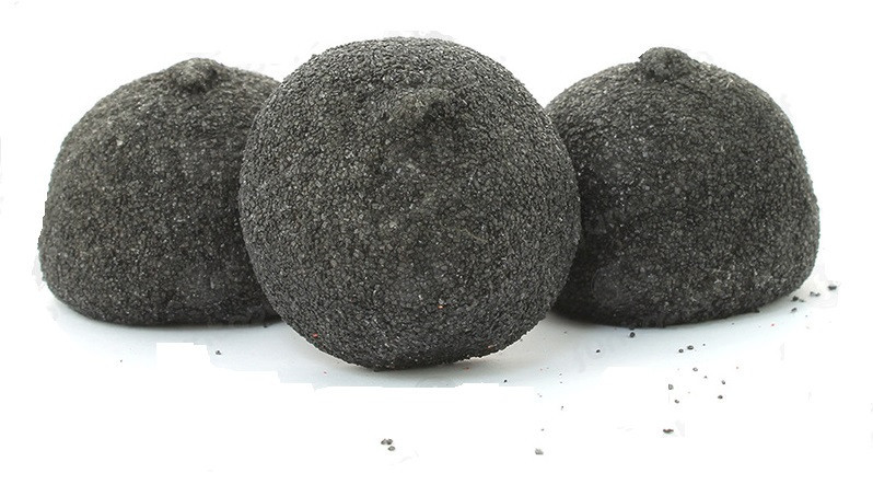 Embalagem de 900g de bolas pretas em marshmallows com cerca de 110 unidades.