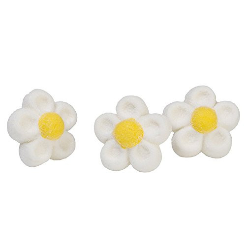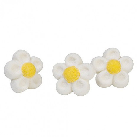 Embalagem de 900g de margaridas brancas em marshmallows com cerca de 100 unidades.