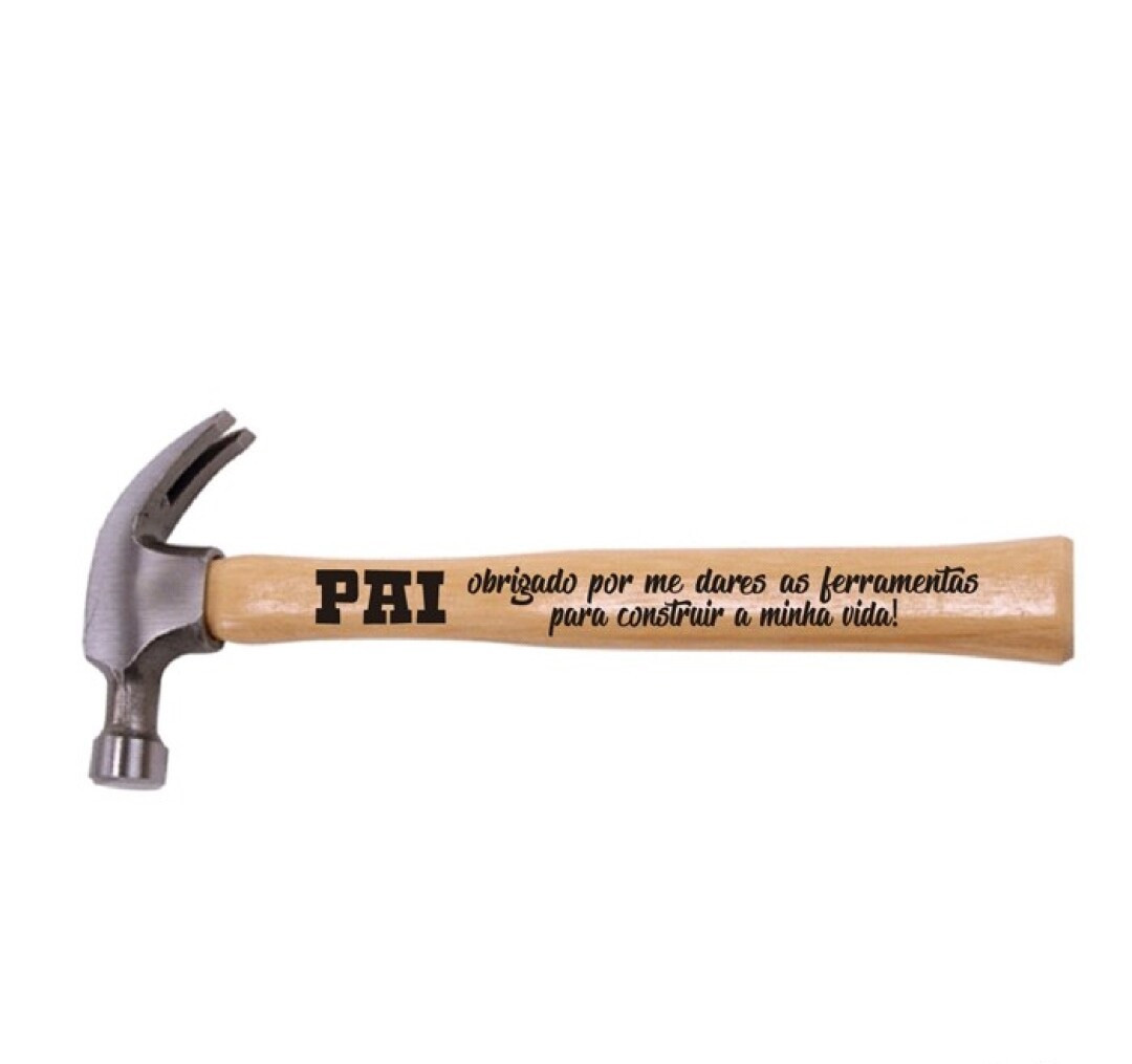 Para oferecer no dia do pai, um martelo para a bricolage, com a inscrição "Pai obrigado por me dares as ferramentas para construir a minha vida."