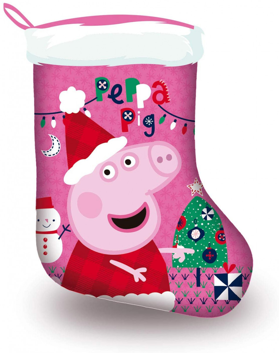 Para complementar a festividade do Natal, uma meia da Porquinha Peppa para em tons de cor de rosa.
