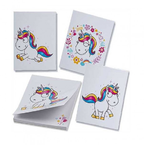 Quatro modelos sortidos de mini-bloco notas do Unicórnio de formato A7 com 40 páginas.