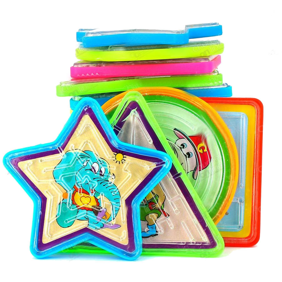 Joguinho passatempo labirinto com várias cores e formas sortidas como circulos, estrelas, triangulos e quadrados. Medem cerca de 7cm x 0.5cm. Ideais para colocar em pinhatas, caixinhas de brindes ou saquinhos de ofertas. Fomentam a concentração da criança.