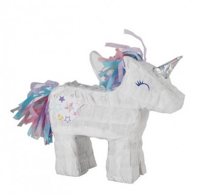 1 Pinhata pequena em forma de mini-unicórnio para decorar a mesa. pode colocar doces mas poucos visto a pinhata ser pequena.