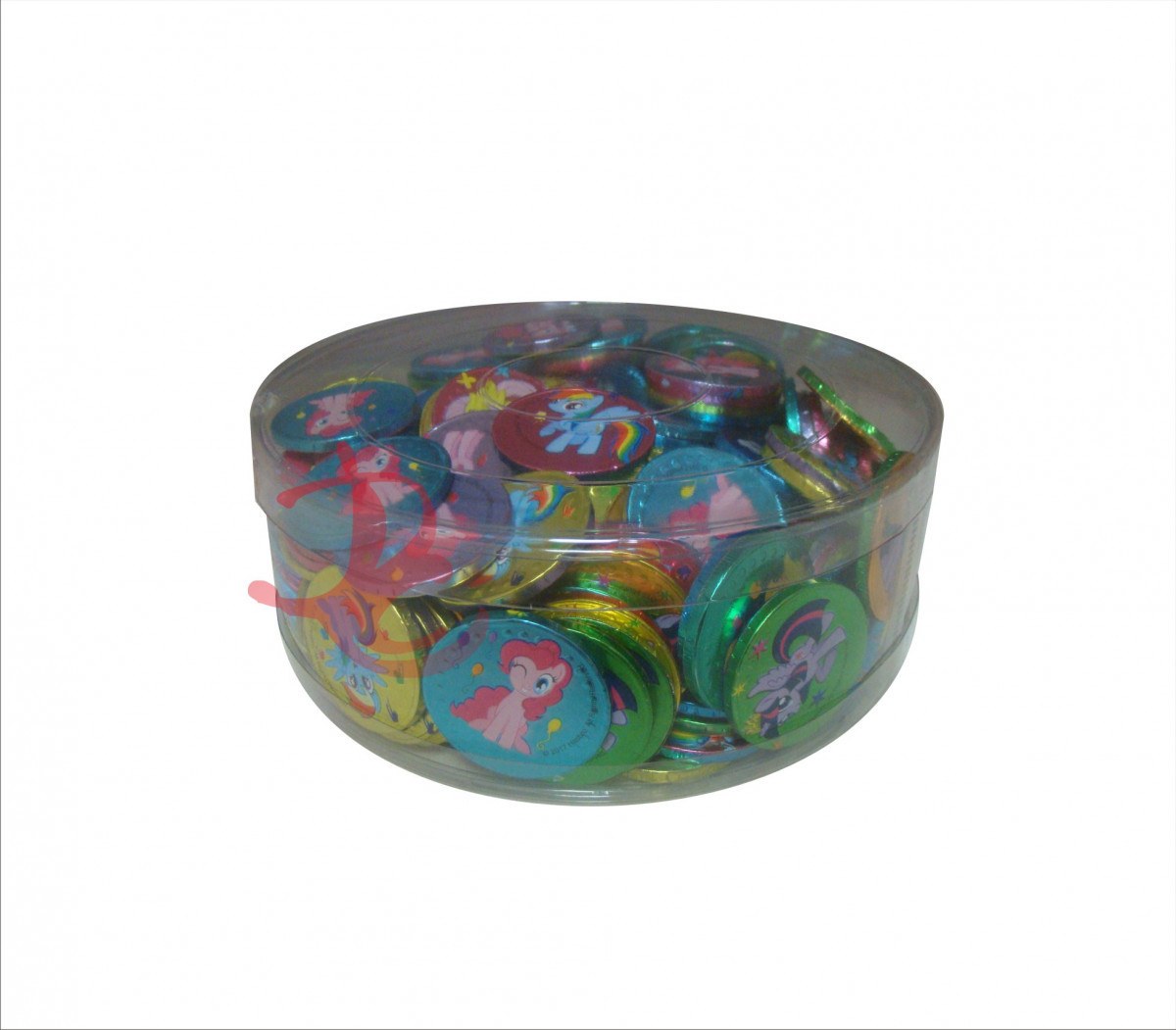 Moeda de chocolate sortida do My Little Pony. Ideal para complementar a festa das mais pequenas princesas da casa. Medida: 3.7mm de diâmetro aproximadamente.