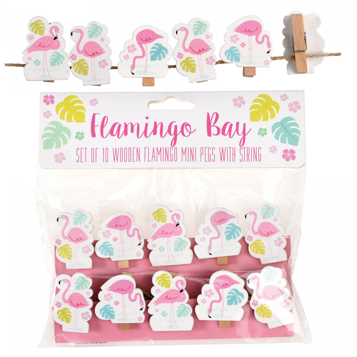 Conjunto de 10 mini molas de madeira do Flaminho em sequência, perfeito para pendurar fotos ou cartões.