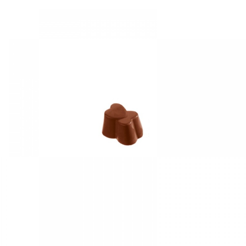 Molde em policarbonato para a execução de bombons de chocolate em forma de coração duplo.