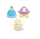 Molde em plástico com 3 designs diferentes do tema Princesa e 3 cavidades para fazer bombons de chocolate