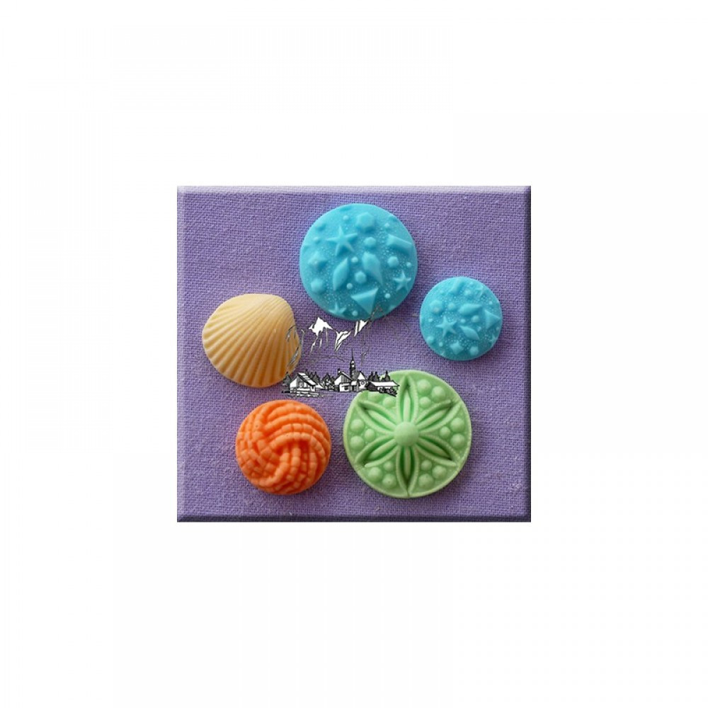 Motivos marinhos em moldes de silicone entre 1 a 2 cm aproximadamente.